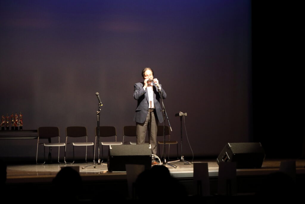 全日本ハーモニカ主催「第一回全日本ハーモニカ演懐コンクール」が、2022年1月16日にココプラザ(新大阪)で、関西ハーモニカ連盟が実行主体となって開催されました。曲目は以下のプログラムにありますように、演歌や懐かしい歌謡曲などが中心。出演者は、関東、中部、関西、中国、四国、九州にまたがり、審査員の先生方もお困りになるほどレベルの高いコンサートとなりました。