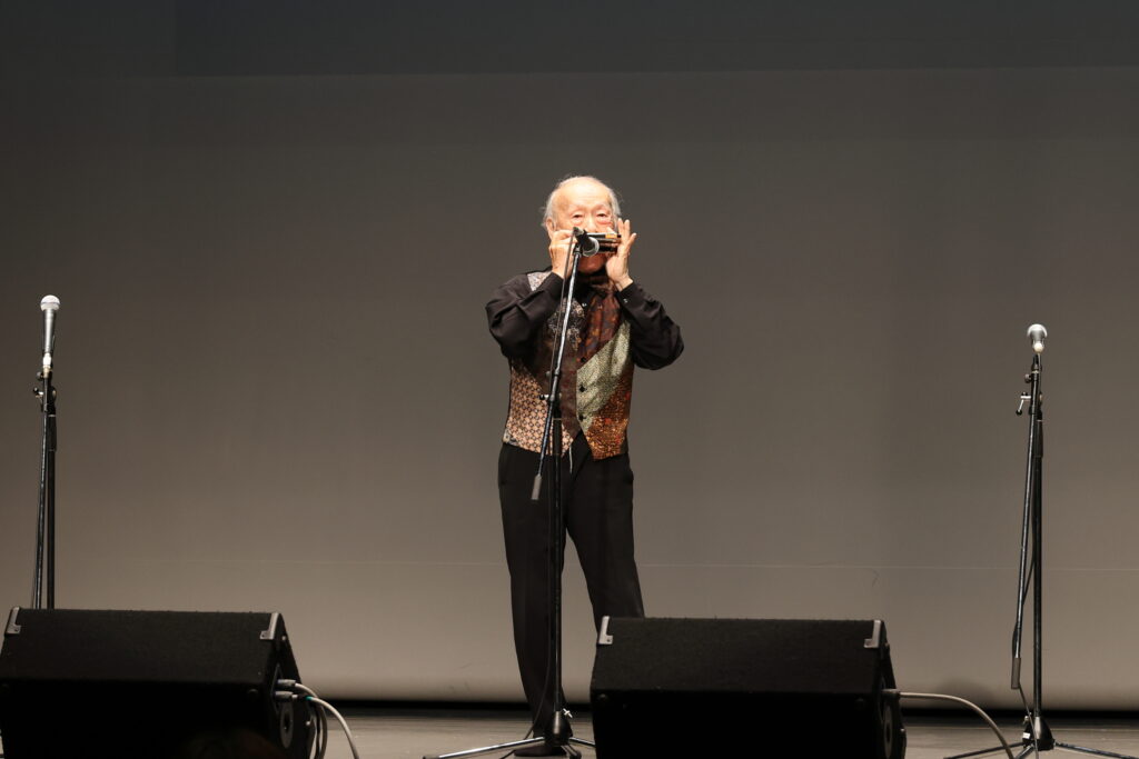 ここで日本ハーモニカ芸術協会会長 田邊峯光氏のサプライズ出演がありました。素敵な桜のワルツの演奏をして頂きました。
