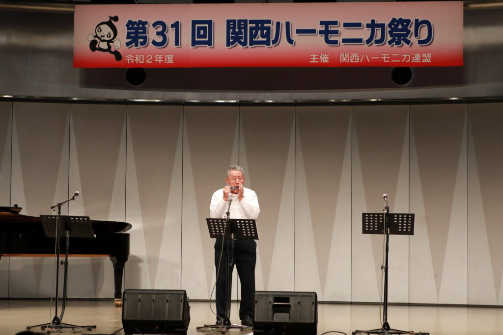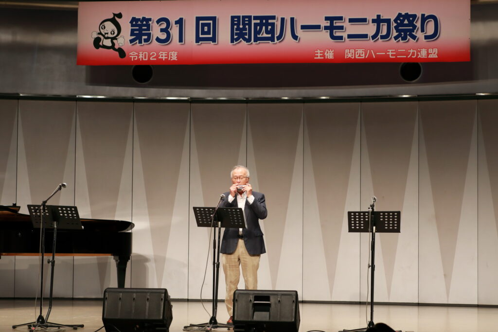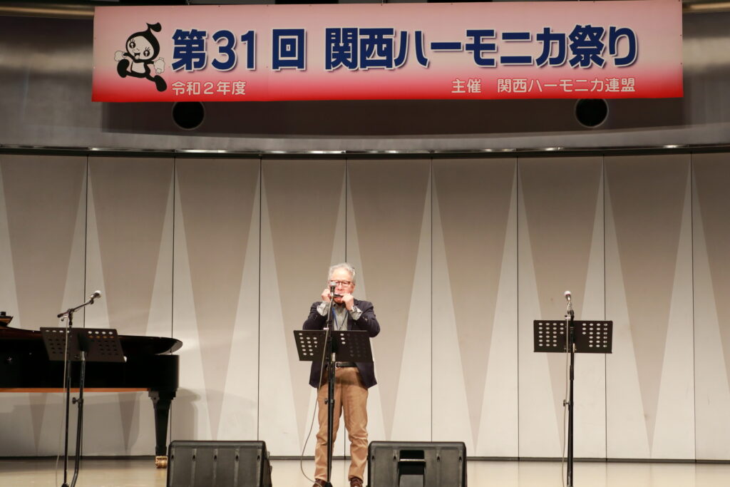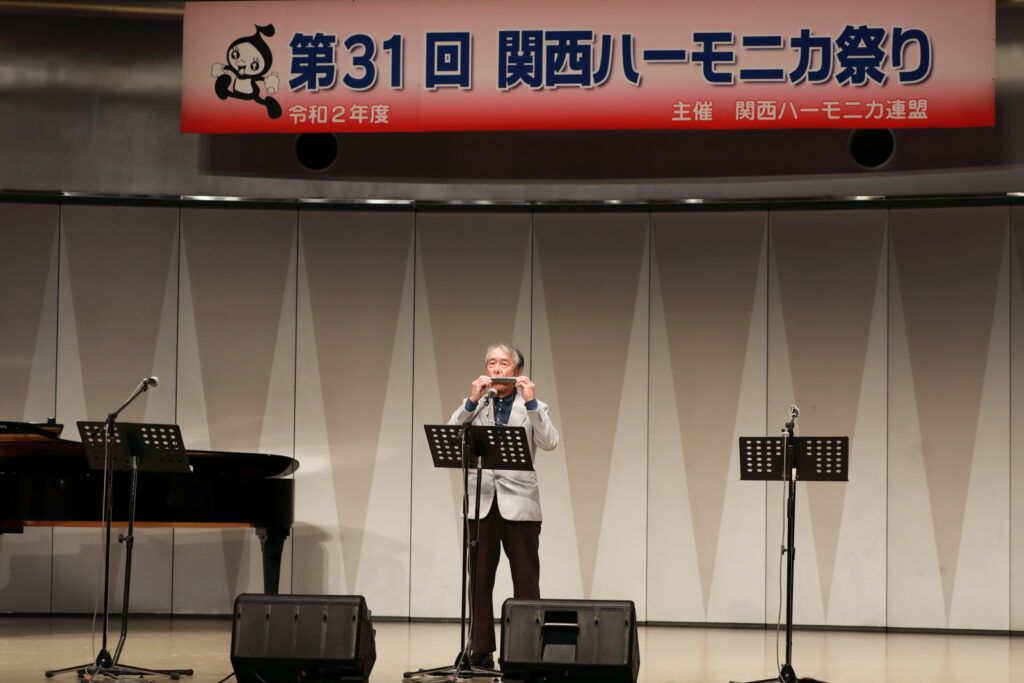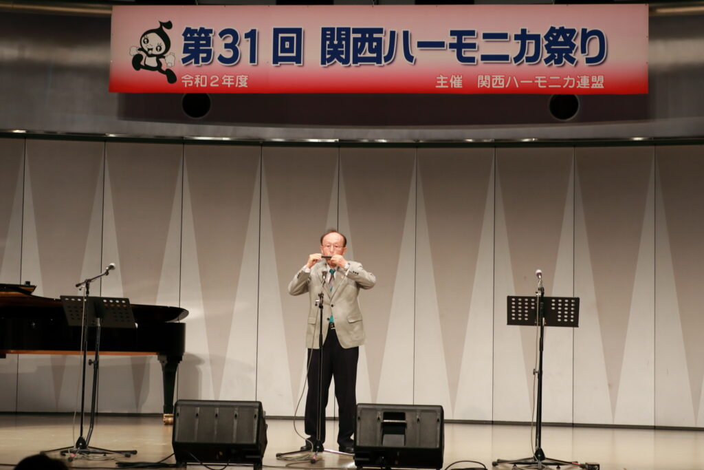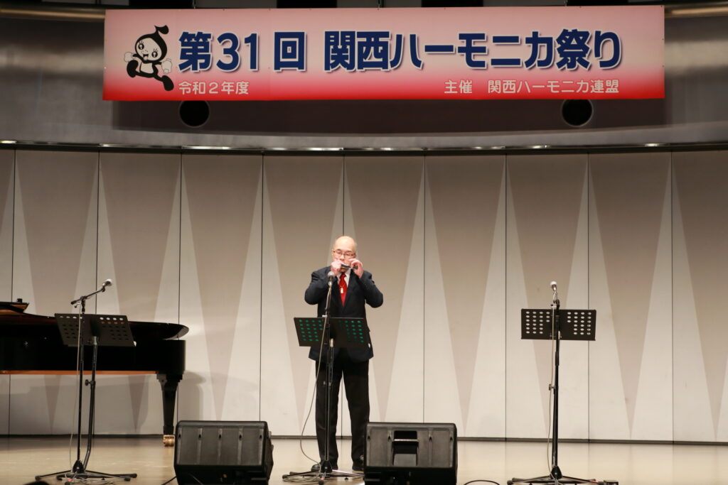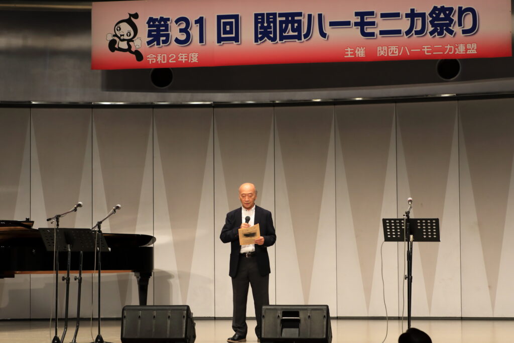 私事で恐縮ですが、先日、研修部長小林先生の企画で私の「古稀リサイタル」を開催していただきました。このような時だからこそステージに立つこと、演奏できる感動は、何物にも代えがたいものでした。また、会場にお越しいただいた方からの温かいお言葉が、今後の大きな力となります。 よくアンサンブルなどで息を合わすと言いますが、すべての事柄は呼吸を合わせることでなんとかなると思っています。ハーモニカという楽器に呼吸を合わせ、ナマ音の深さ、醍醐味を感じ、第31回関西ハーモニカ祭りのステージを楽しんでください。このことをお願いして、ご挨拶といたします。本日は、ありがとうございました。