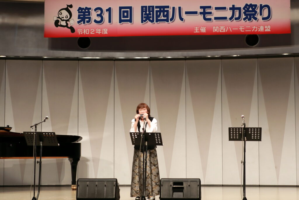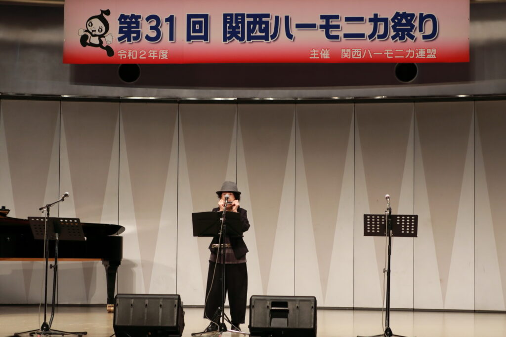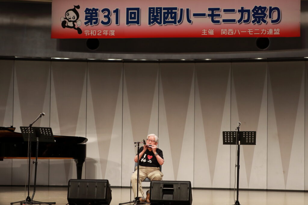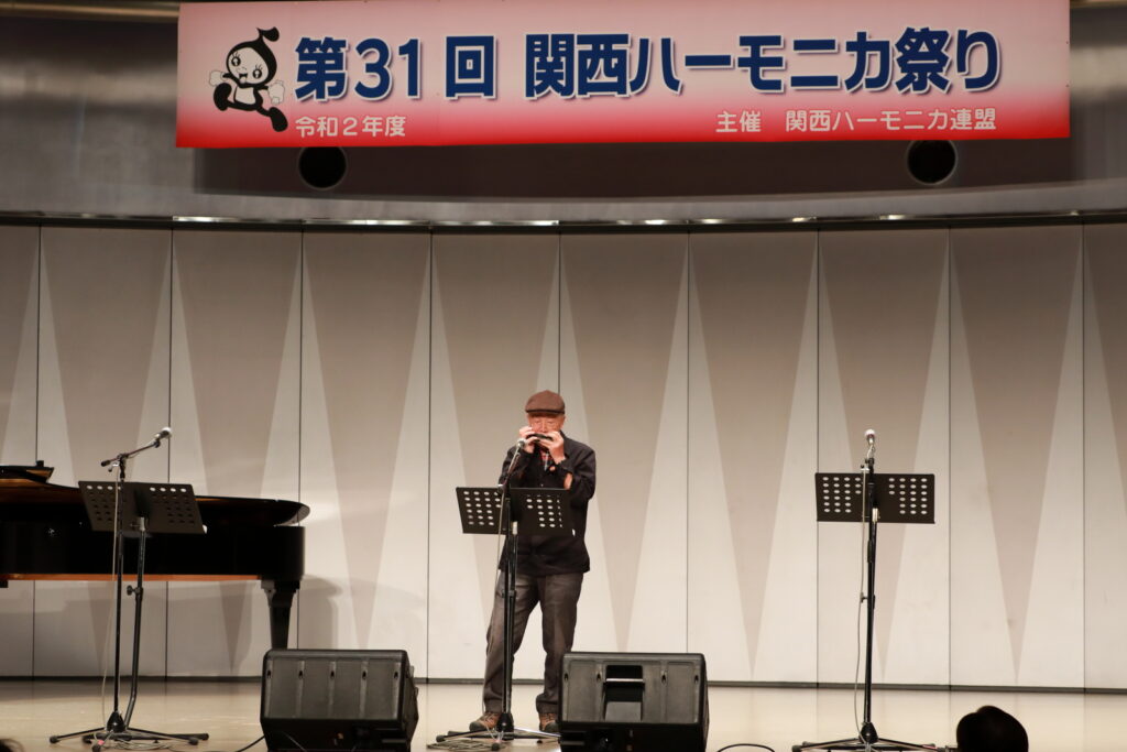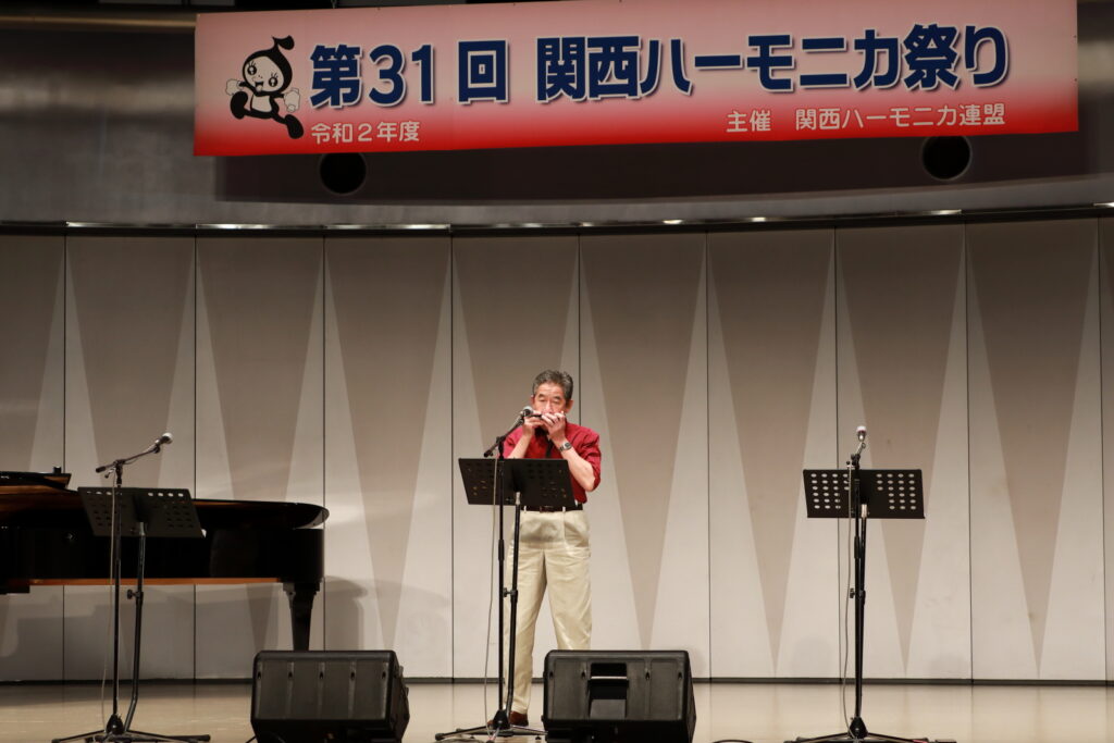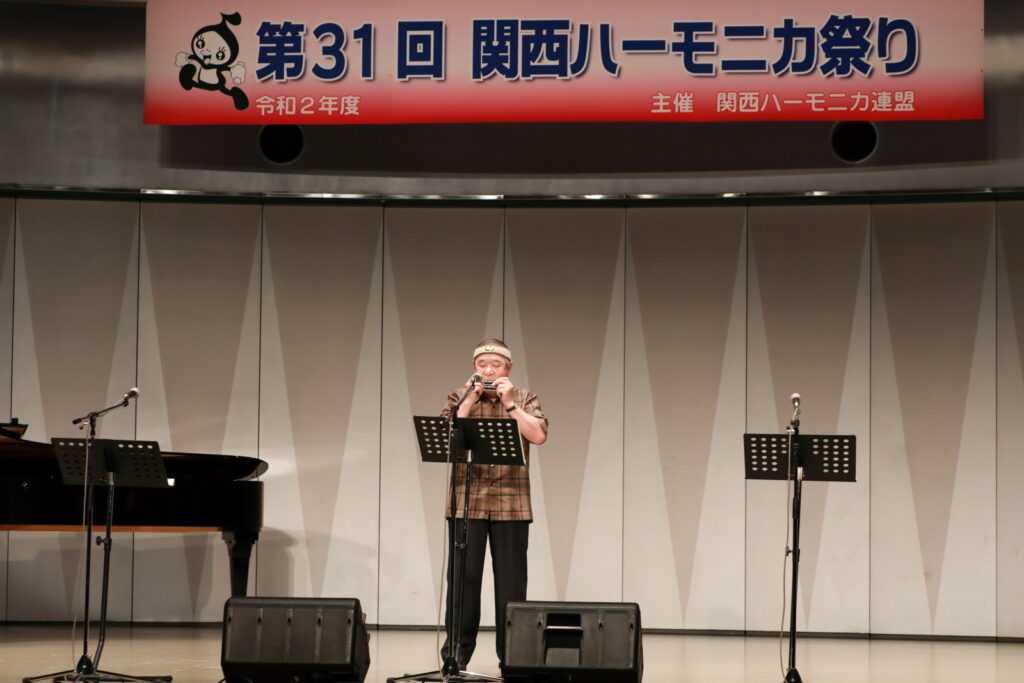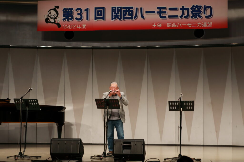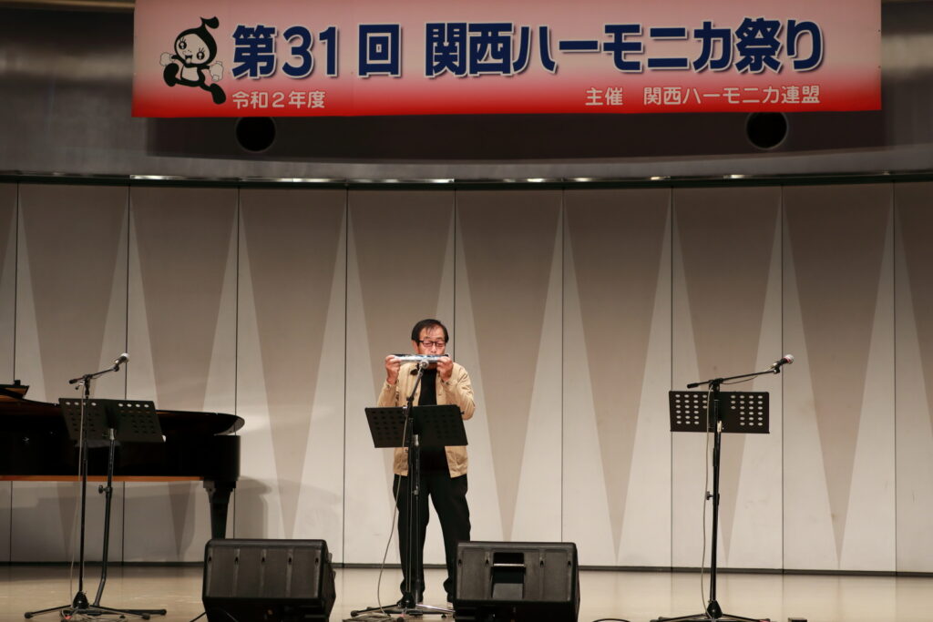 私事で恐縮ですが、先日、研修部長小林先生の企画で私の「古稀リサイタル」を開催していただきました。このような時だからこそステージに立つこと、演奏できる感動は、何物にも代えがたいものでした。また、会場にお越しいただいた方からの温かいお言葉が、今後の大きな力となります。 よくアンサンブルなどで息を合わすと言いますが、すべての事柄は呼吸を合わせることでなんとかなると思っています。ハーモニカという楽器に呼吸を合わせ、ナマ音の深さ、醍醐味を感じ、第31回関西ハーモニカ祭りのステージを楽しんでください。このことをお願いして、ご挨拶といたします。本日は、ありがとうございました。