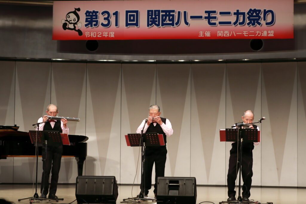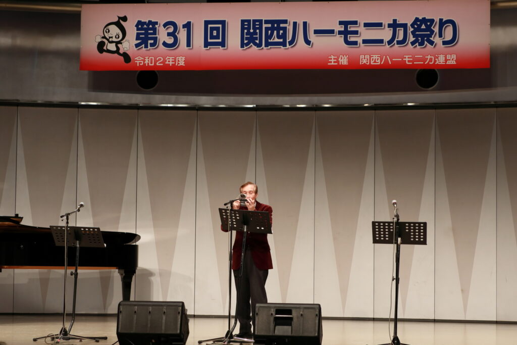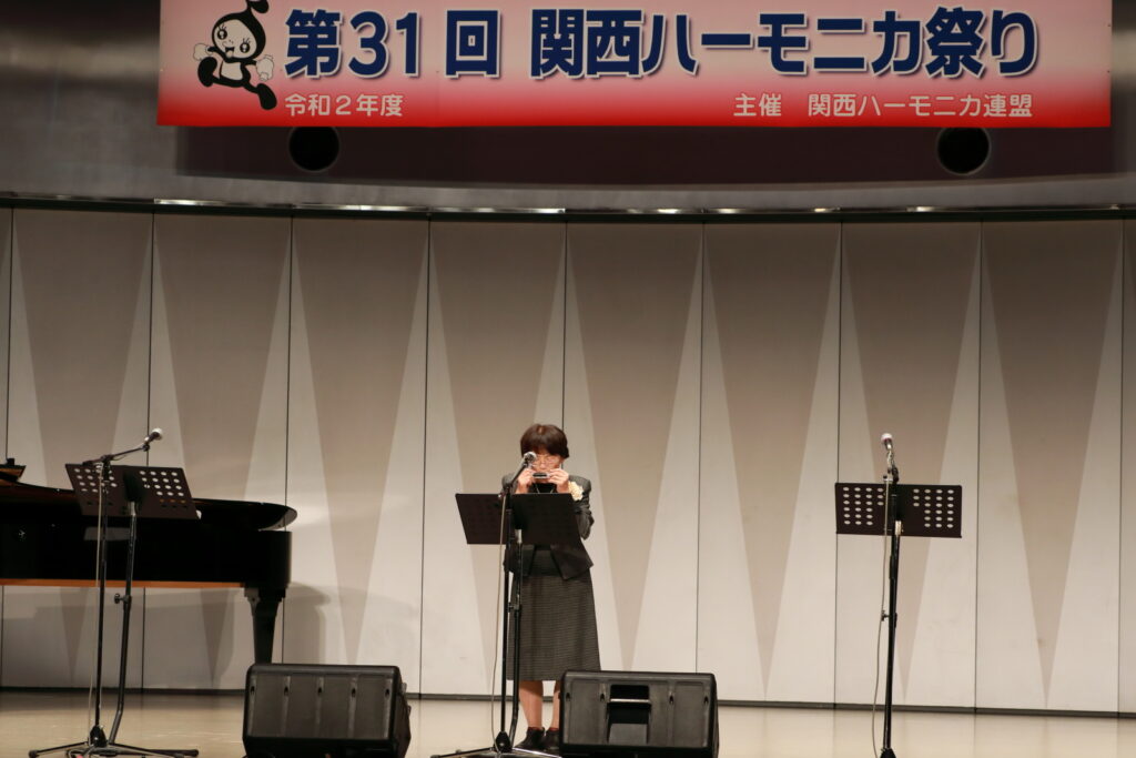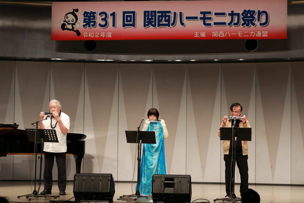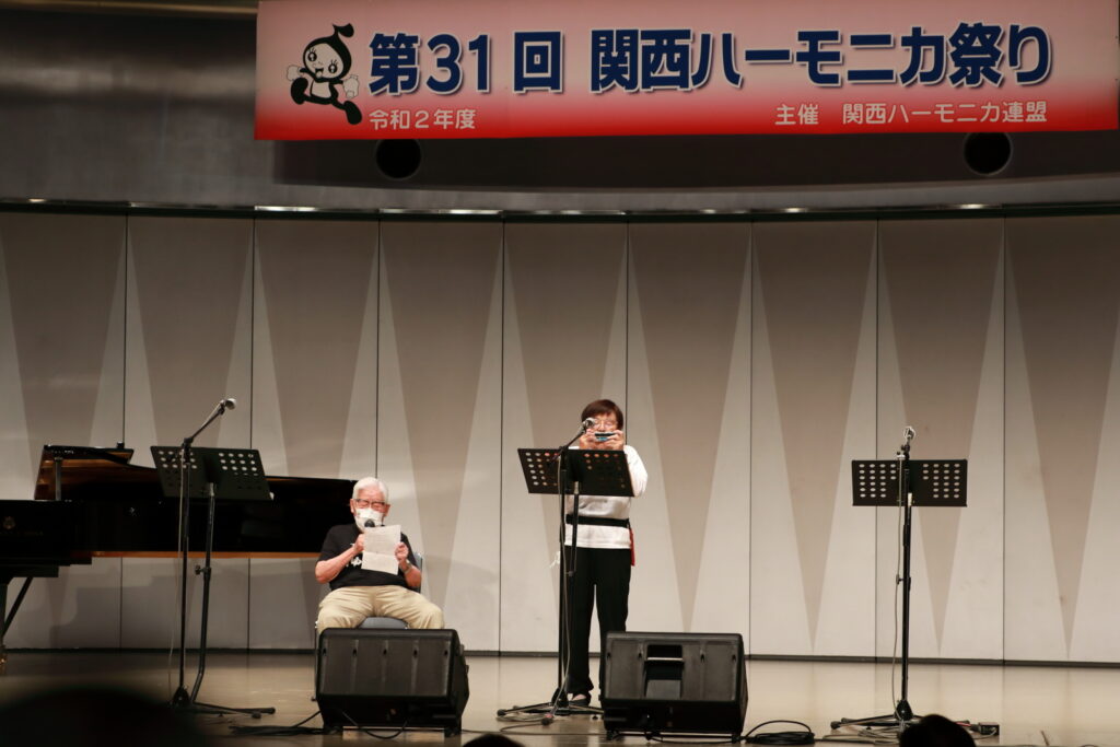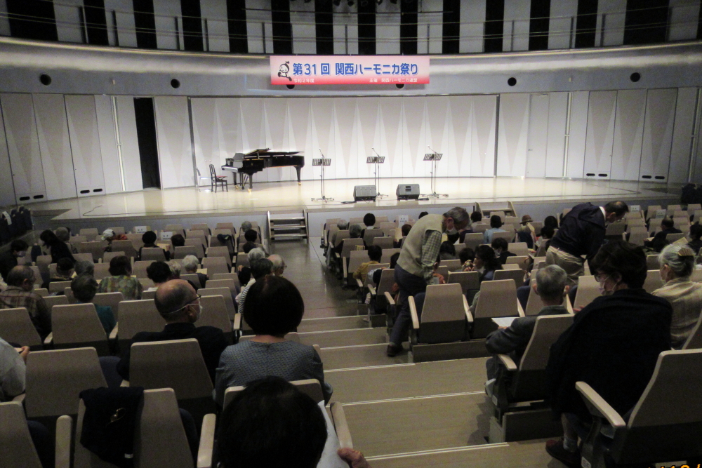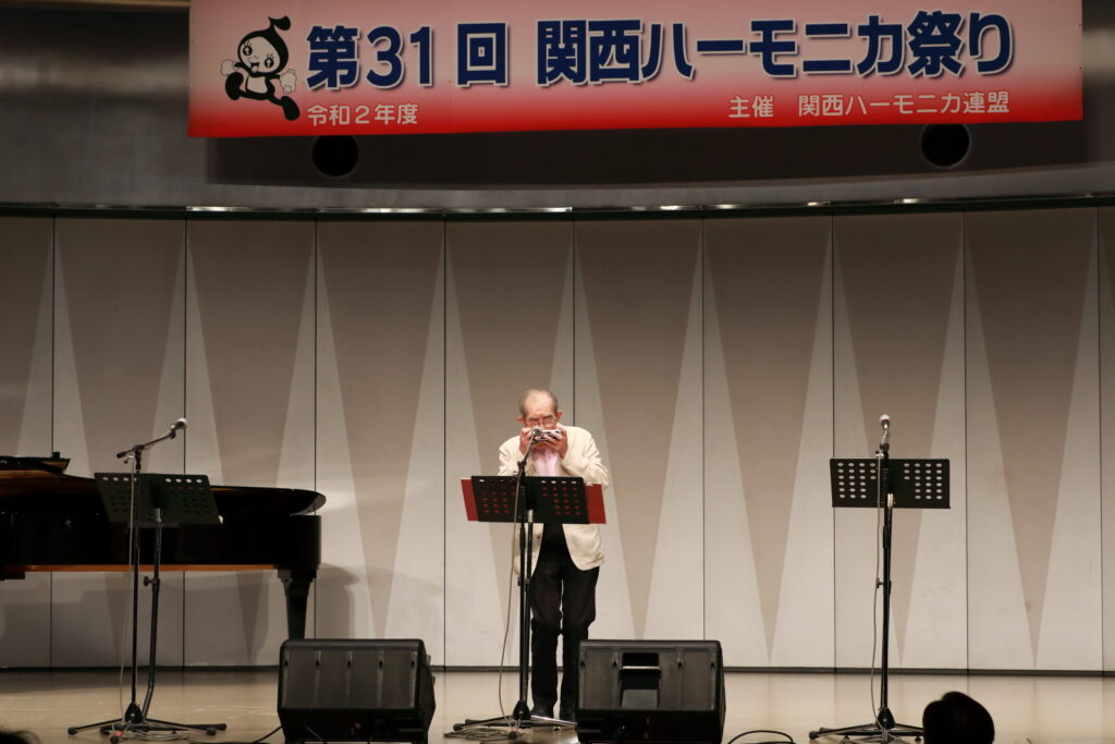 私事で恐縮ですが、先日、研修部長小林先生の企画で私の「古稀リサイタル」を開催していただきました。このような時だからこそステージに立つこと、演奏できる感動は、何物にも代えがたいものでした。また、会場にお越しいただいた方からの温かいお言葉が、今後の大きな力となります。 よくアンサンブルなどで息を合わすと言いますが、すべての事柄は呼吸を合わせることでなんとかなると思っています。ハーモニカという楽器に呼吸を合わせ、ナマ音の深さ、醍醐味を感じ、第31回関西ハーモニカ祭りのステージを楽しんでください。このことをお願いして、ご挨拶といたします。本日は、ありがとうございました。