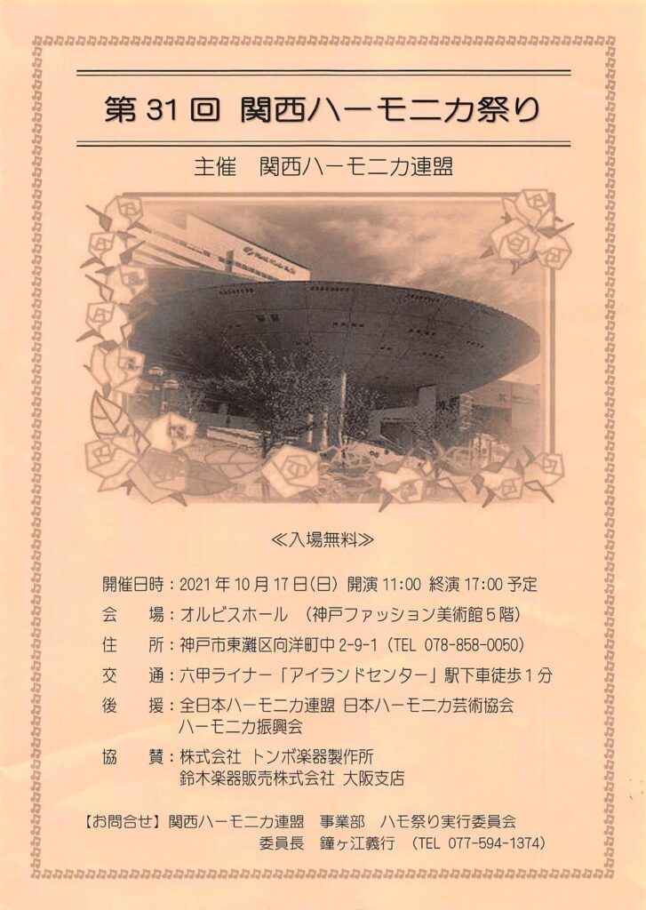 みなさん、こんにちは。早朝よりお出ましくださりありがとうございます。スタッフの皆様、朝早くからの準備ご苦労様です。関西ハーモニカ祭りは、今回で31回を迎えます。
