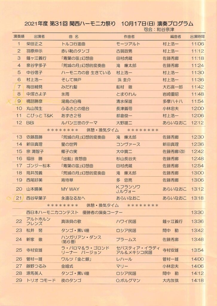 西日本ハーモニカコンテスト 優勝者のコーナー