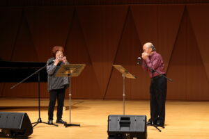 以下では、15日と16日に分けて、出演者の熱演の写真を掲載します。また、写真の大きさの違いからソロ、小アンサンブル、大アンサンブルに分けて掲載します。写真はそれぞれの分割の中では演奏順に並んでいます。出演者の都合で一部プログラムと相違あることをご了承ください。なお、舞台横断垂幕ポスター記載ミスがあり、残念ながら写真には写していません。