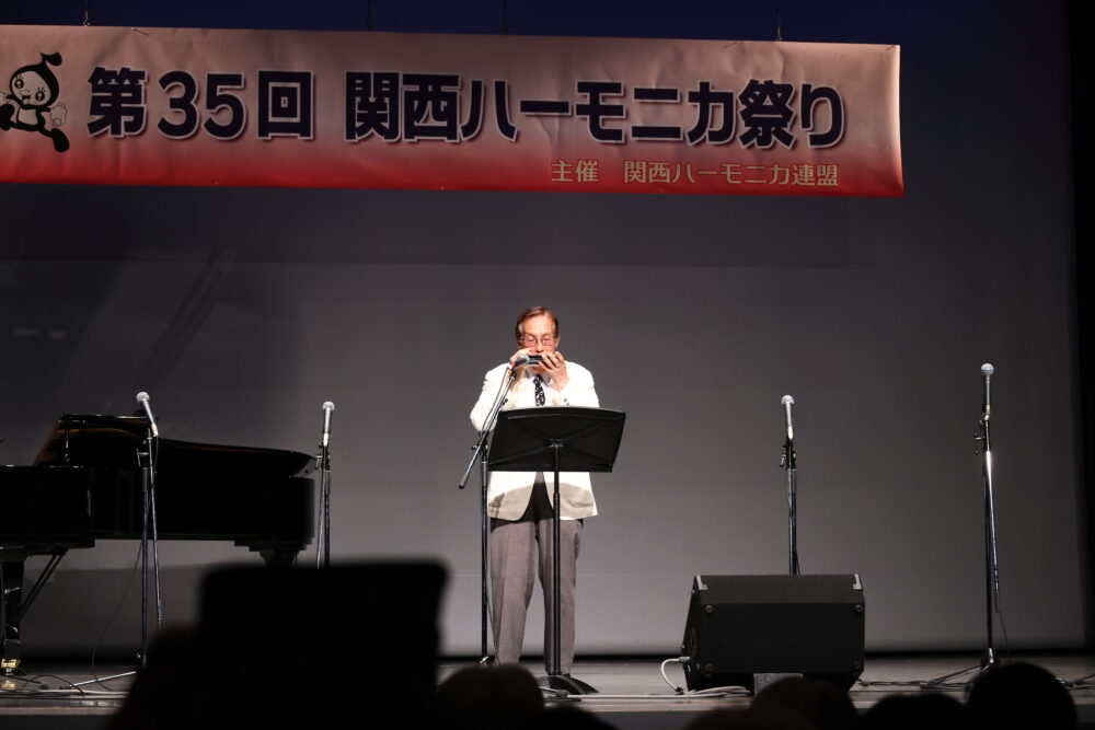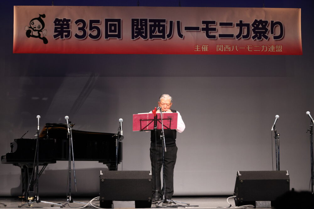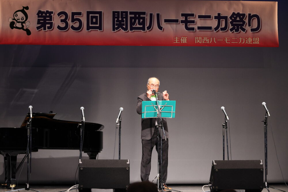 2025年度第35回関西ハーモニカ祭りは、松本孝司実行委員長の挨拶をもって無事終了となりました。ソロ演奏とアンサンブル演奏の合計で95組となり盛況な演奏会でした。来年2026年度の関西ハーモニカ祭りは、ここココプラザで10月17日(土)、18日(日)にわたって開催の予定です。