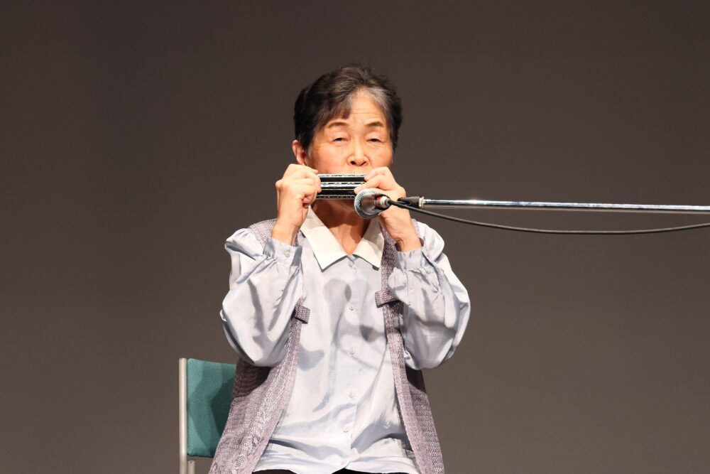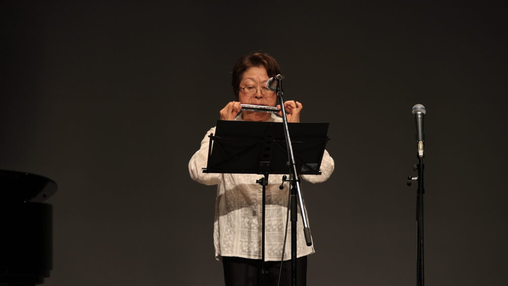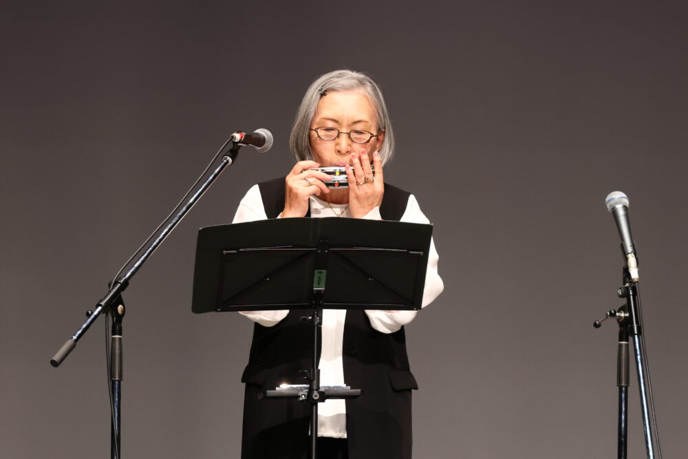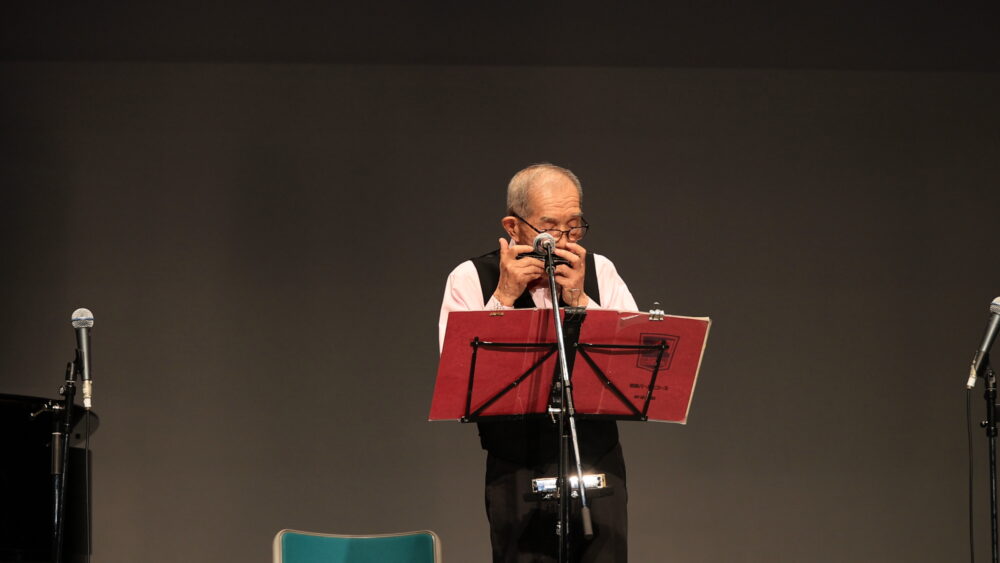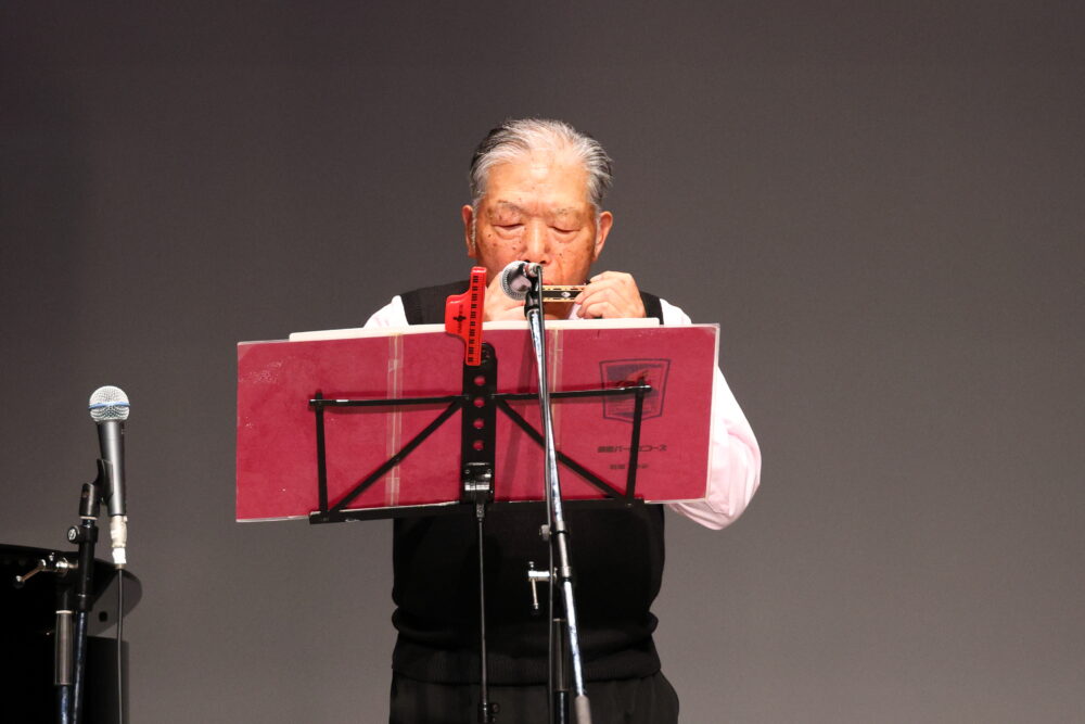 昨年に引き続き、「いつもそばにハーモニカ」を全員で歌いました。