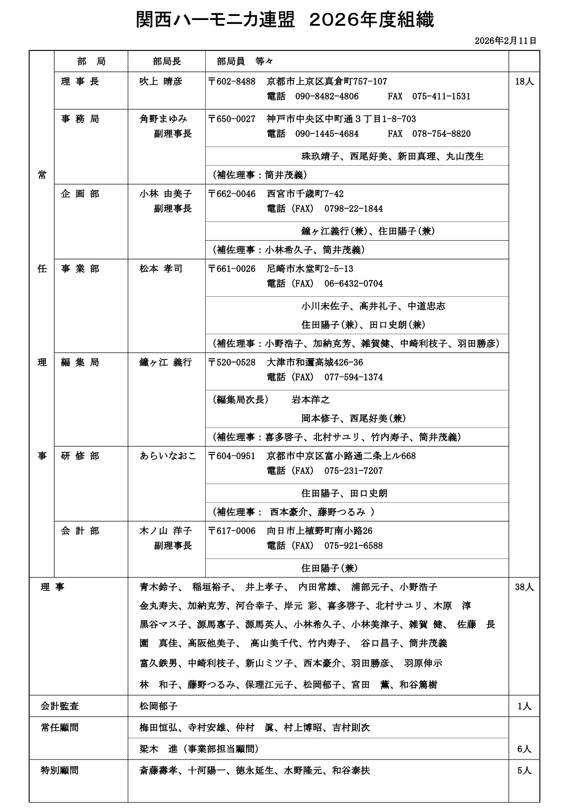 関西ハーモニカ連盟の組織